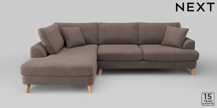6.12.1 Buy Parker Large Corner Chaise - Left Hand Luxe Chenille Mink Brown Low Retro Tapered - Light from the Next UK online shop Click here to use our accessible website