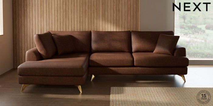 7.3.1 Buy Parker Large Corner Chaise - Left Hand Monza Faux Leather Easy Clean Chestnut Brown High Metal - Brass from the Next UK online shop Click here to use our accessible website