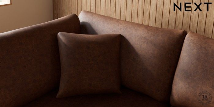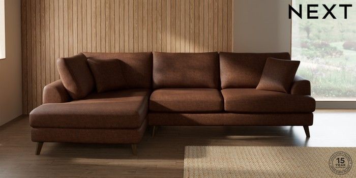 7.3.1 Buy Parker Large Corner Chaise - Left Hand Monza Faux Leather Easy Clean Chestnut Brown Low Retro Tapered - Mid from the Next UK online shop Click here to use our accessible website