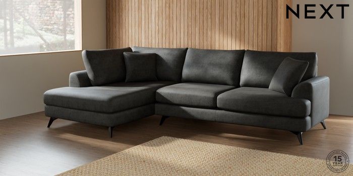 7.2.5 Buy Parker Large Corner Chaise - Left Hand Monza Faux Leather Easy Clean Dark Grey High Metal - Black from the Next UK online shop Click here to use our accessible website