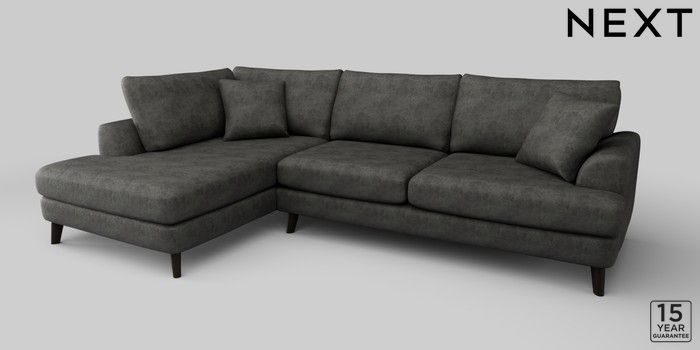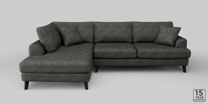 6.12.1 Buy Parker Large Corner Chaise - Left Hand Monza Faux Leather Easy Clean Dark Grey Low Retro Tapered - Dark from the Next UK online shop Click here to use our accessible website