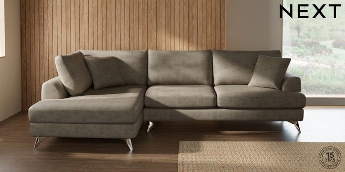 7.3.1 Buy Parker Large Corner Chaise - Left Hand Monza Faux Leather Easy Clean Mink Brown High Metal - Chrome from the Next UK online shop Click here to use our accessible website