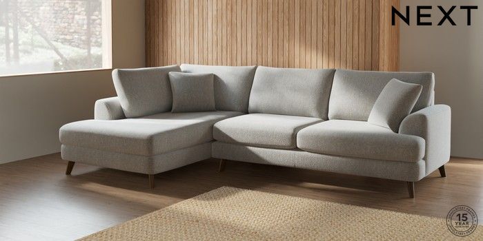 7.2.6 Buy Parker Large Corner Chaise - Left Hand Multi Weave Light Blue Low Retro Tapered - Mid from the Next UK online shop Click here to use our accessible website