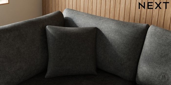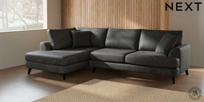 7.2.4 Buy Parker Large Corner Chaise - Left Hand Plush Chenille Dark Grey Low Retro Tapered - Dark from the Next UK online shop Click here to use our accessible website