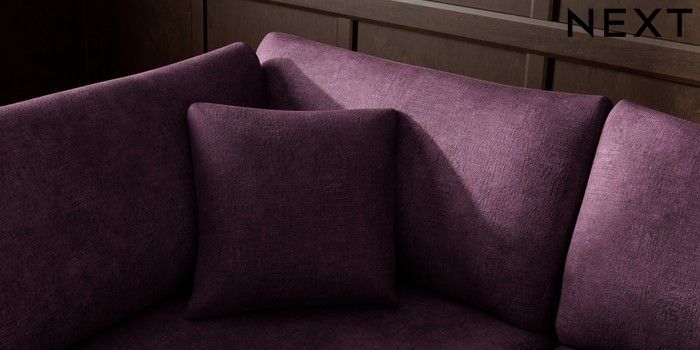7.3.1 Buy Parker Large Corner Chaise - Left Hand Plush Chenille Dark Plum Purple High Metal - Brass from the Next UK online shop Click here to use our accessible website