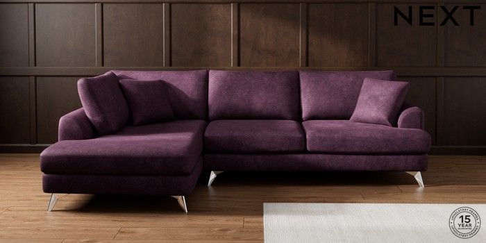 7.3.1 Buy Parker Large Corner Chaise - Left Hand Plush Chenille Dark Plum Purple High Metal - Chrome from the Next UK online shop Click here to use our accessible website
