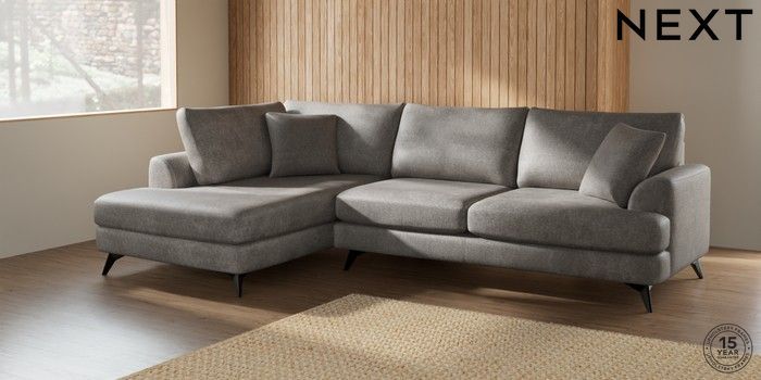7.2.5 Buy Parker Large Corner Chaise - Left Hand Plush Chenille Light Grey High Metal - Black from the Next UK online shop Click here to use our accessible website