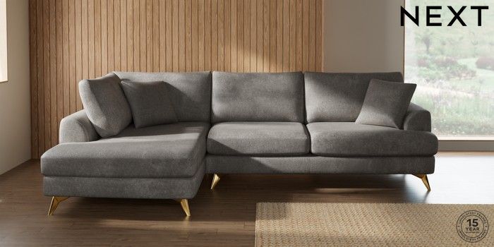 7.2.10 Buy Parker Large Corner Chaise - Left Hand Plush Chenille Light Grey High Metal - Brass from the Next UK online shop Click here to use our accessible website