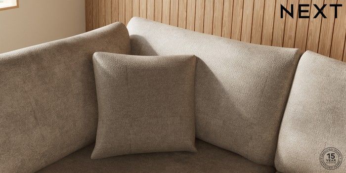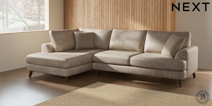 7.2.5 Buy Parker Large Corner Chaise - Left Hand Plush Chenille Light Natural Low Retro Tapered - Mid from the Next UK online shop Click here to use our accessible website