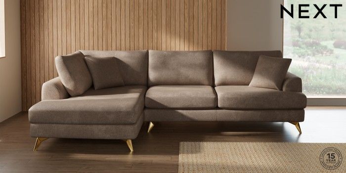 7.2.10 Buy Parker Large Corner Chaise - Left Hand Plush Chenille Mid Natural High Metal - Brass from the Next UK online shop Click here to use our accessible website