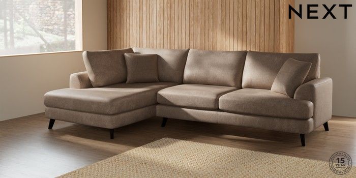 7.2.5 Buy Parker Large Corner Chaise - Left Hand Plush Chenille Mid Natural Low Retro Tapered - Dark from the Next UK online shop Click here to use our accessible website