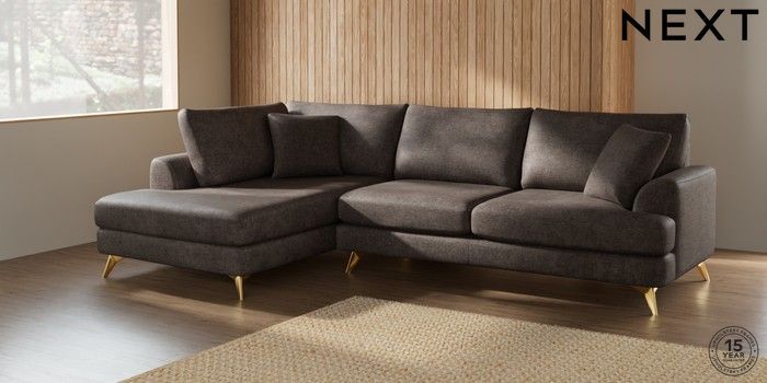 7.2.5 Buy Parker Large Corner Chaise - Left Hand Plush Chenille Mink Brown High Metal - Brass from the Next UK online shop Click here to use our accessible website