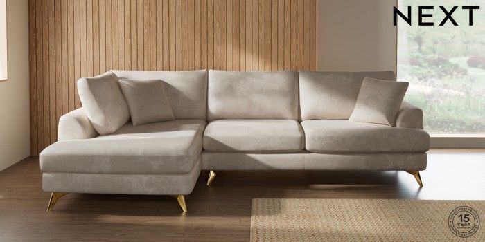 7.2.10 Buy Parker Large Corner Chaise - Left Hand Plush Chenille Oyster High Metal - Brass from the Next UK online shop Click here to use our accessible website