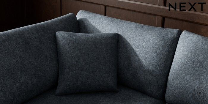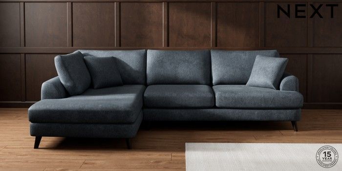 7.2.10 Buy Parker Large Corner Chaise - Left Hand Plush Chenille Slate Blue Low Retro Tapered - Dark from the Next UK online shop Click here to use our accessible website