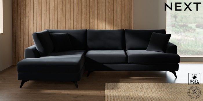 7.3.1 Buy Parker Large Corner Chaise - Left Hand Plush Velvet Easy Clean Charcoal Grey High Metal - Black from the Next UK online shop Click here to use our accessible website