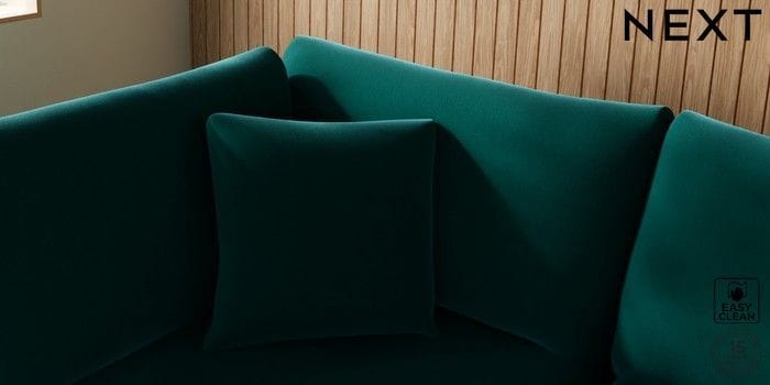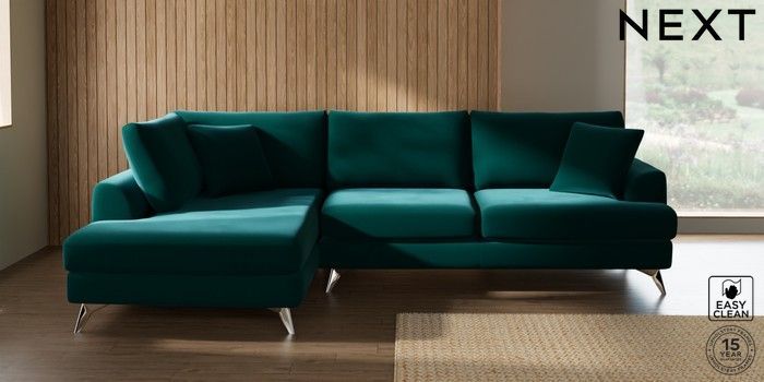 7.3.1 Buy Parker Large Corner Chaise - Left Hand Plush Velvet Easy Clean Juniper Green High Metal - Chrome from the Next UK online shop Click here to use our accessible website