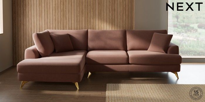 7.2.10 Buy Parker Large Corner Chaise - Left Hand Relaxed Linen Look Light Rust Brown High Metal - Brass from the Next UK online shop Click here to use our accessible website