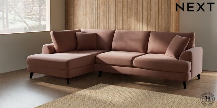 7.2.5 Buy Parker Large Corner Chaise - Left Hand Relaxed Linen Look Light Rust Brown Low Retro Tapered - Dark from the Next UK online shop Click here to use our accessible website