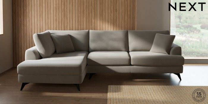 7.3.1 Buy Parker Large Corner Chaise - Left Hand Ripple Chenille Light Natural High Metal - Black from the Next UK online shop Click here to use our accessible website