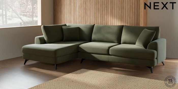 7.2.5 Buy Parker Large Corner Chaise - Left Hand Ripple Chenille Mid Moss Green High Metal - Black from the Next UK online shop Click here to use our accessible website