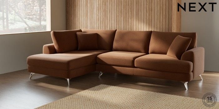7.2.5 Buy Parker Large Corner Chaise - Left Hand Ripple Chenille Mid Rust Brown High Metal - Chrome from the Next UK online shop Click here to use our accessible website