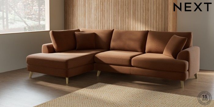 7.2.4 Buy Parker Large Corner Chaise - Left Hand Ripple Chenille Mid Rust Brown Low Retro Tapered - Light from the Next UK online shop Click here to use our accessible website