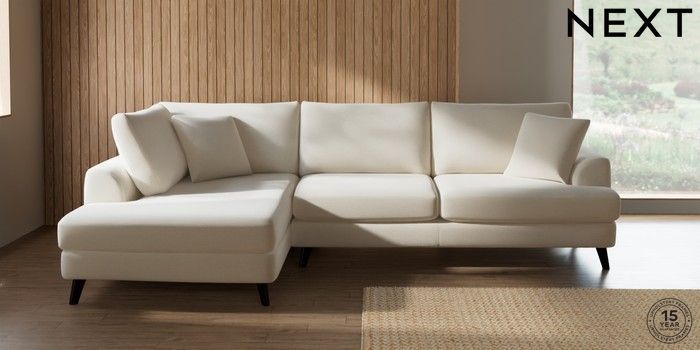 7.3.1 Buy Parker Large Corner Chaise - Left Hand Ripple Chenille Oyster Low Retro Tapered - Dark from the Next UK online shop Click here to use our accessible website