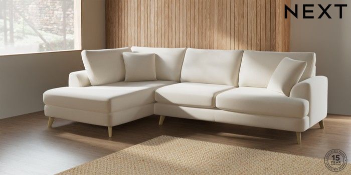 7.2.4 Buy Parker Large Corner Chaise - Left Hand Ripple Chenille Oyster Low Retro Tapered - Light from the Next UK online shop Click here to use our accessible website