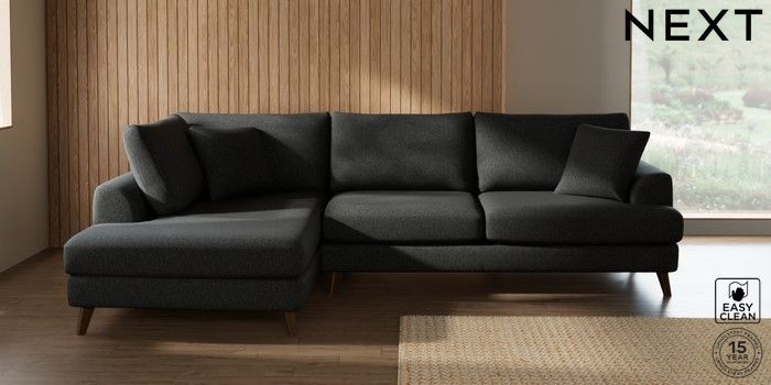 7.2.4 Buy Parker Large Corner Chaise - Left Hand Tweedy Blend Easy Clean Charcoal Grey Low Retro Tapered - Mid from the Next UK online shop Click here to use our accessible website