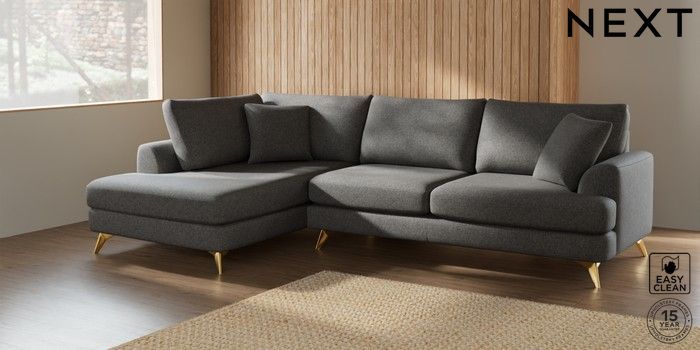 7.2.5 Buy Parker Large Corner Chaise - Left Hand Tweedy Blend Easy Clean Dark Grey High Metal - Brass from the Next UK online shop Click here to use our accessible website