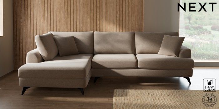 7.3.1 Buy Parker Large Corner Chaise - Left Hand Tweedy Blend Easy Clean Light Dove Natural High Metal - Black from the Next UK online shop Click here to use our accessible website