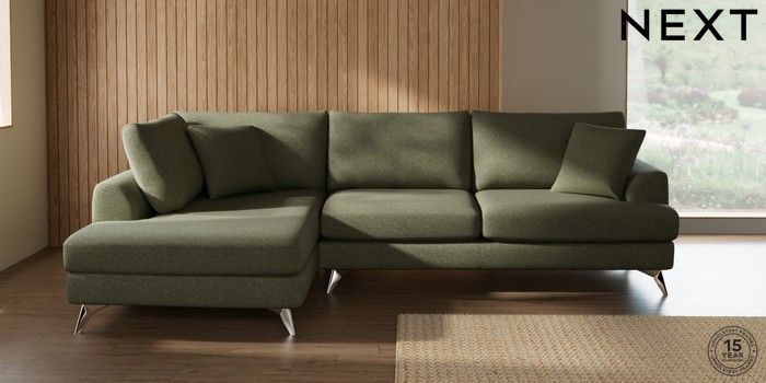 7.3.1 Buy Parker Large Corner Chaise - Left Hand Tweedy Chenille Mid Moss Green High Metal - Chrome from the Next UK online shop Click here to use our accessible website