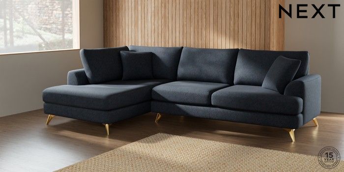 7.2.5 Buy Parker Large Corner Chaise - Left Hand Tweedy Chenille Navy Blue High Metal - Brass from the Next UK online shop Click here to use our accessible website
