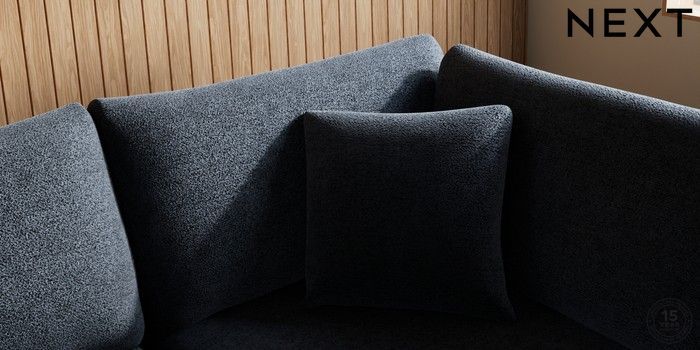7.3.1 Buy Parker Large Corner Chaise - Right Hand Boucle Chenille Dark Slate Blue Low Retro Tapered - Mid from the Next UK online shop Click here to use our accessible website