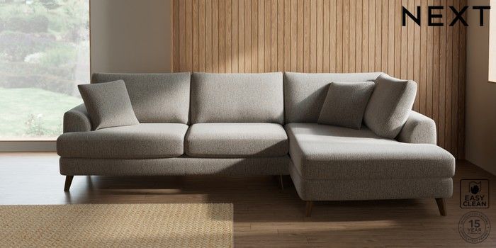 7.2.4 Buy Parker Large Corner Chaise - Right Hand Chunky Boucle Easy Clean Dove Low Retro Tapered - Mid from the Next UK online shop Click here to use our accessible website