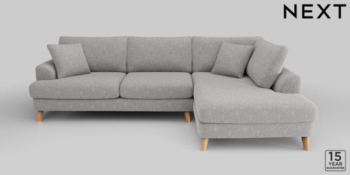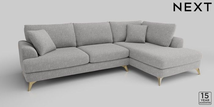 6.12.13 Buy Parker Large Corner Chaise - Right Hand Chunky Chenille Light Grey High Metal - Brass from the Next UK online shop Click here to use our accessible website