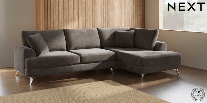 7.2.5 Buy Parker Large Corner Chaise - Right Hand Chunky Chenille Mink Brown High Metal - Chrome from the Next UK online shop Click here to use our accessible website