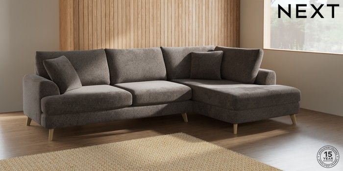 7.0.3 Buy Parker Large Corner Chaise - Right Hand Chunky Chenille Mink Brown Low Retro Tapered - Light from the Next UK online shop Click here to use our accessible website