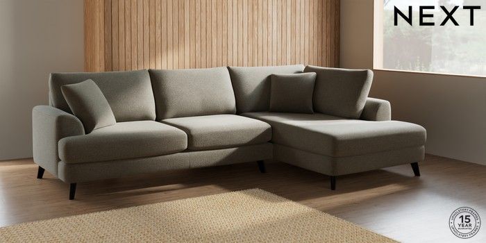 7.2.5 Buy Parker Large Corner Chaise - Right Hand Chunky Marl Light Olive Green Low Retro Tapered - Dark from the Next UK online shop Click here to use our accessible website