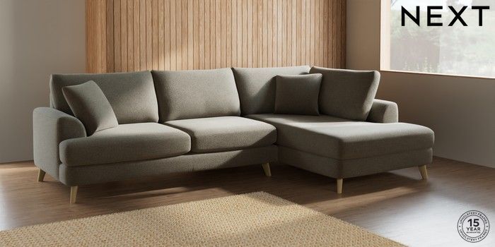 7.2.5 Buy Parker Large Corner Chaise - Right Hand Chunky Marl Light Olive Green Low Retro Tapered - Light from the Next UK online shop Click here to use our accessible website