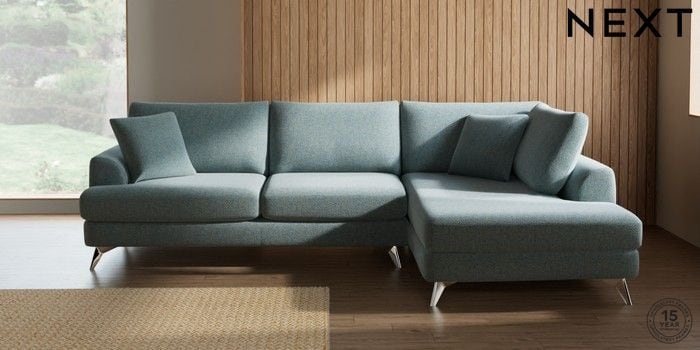 7.2.10 Buy Parker Large Corner Chaise - Right Hand Chunky Marl Mid Blue High Metal - Chrome from the Next UK online shop Click here to use our accessible website