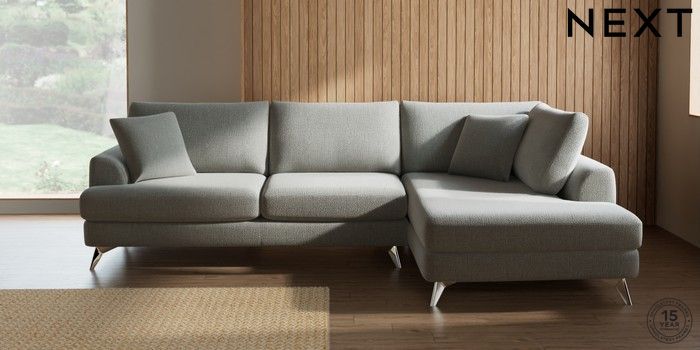 7.2.10 Buy Parker Large Corner Chaise - Right Hand Chunky Texture Dove High Metal - Chrome from the Next UK online shop Click here to use our accessible website