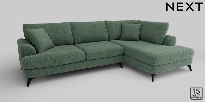 6.12.1 Buy Parker Large Corner Chaise - Right Hand Chunky Texture Mid Forest Green High Metal - Black from the Next UK online shop Click here to use our accessible website