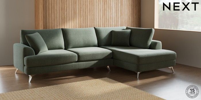 7.2.5 Buy Parker Large Corner Chaise - Right Hand Chunky Texture Mid Forest Green High Metal - Chrome from the Next UK online shop Click here to use our accessible website