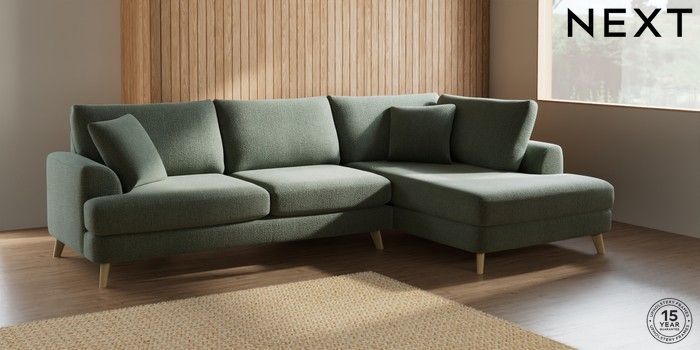 7.2.5 Buy Parker Large Corner Chaise - Right Hand Chunky Texture Mid Forest Green Low Retro Tapered - Light from the Next UK online shop Click here to use our accessible website