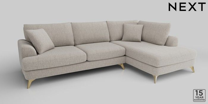 6.12.1 Buy Parker Large Corner Chaise - Right Hand Chunky Weave Dove Grey High Metal - Brass from the Next UK online shop Click here to use our accessible website