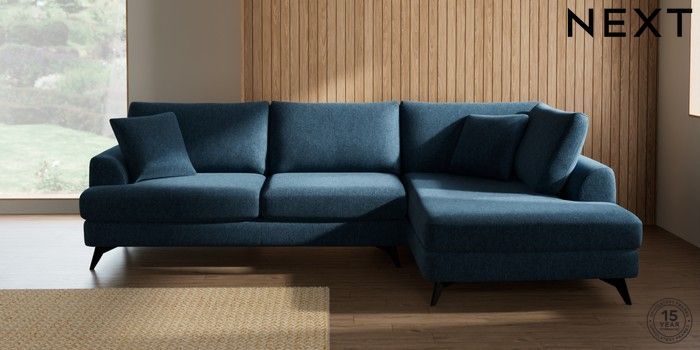 7.3.1 Buy Parker Large Corner Chaise - Right Hand Cotswold Chenille Dark Blue High Metal - Black from the Next UK online shop Click here to use our accessible website