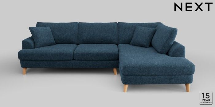 6.12.1 Buy Parker Large Corner Chaise - Right Hand Cotswold Chenille Dark Blue Low Retro Tapered - Light from the Next UK online shop Click here to use our accessible website