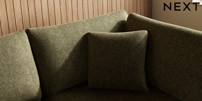 7.3.1 Buy Parker Large Corner Chaise - Right Hand Cotswold Chenille Dark Green Low Retro Tapered - Dark from the Next UK online shop Click here to use our accessible website