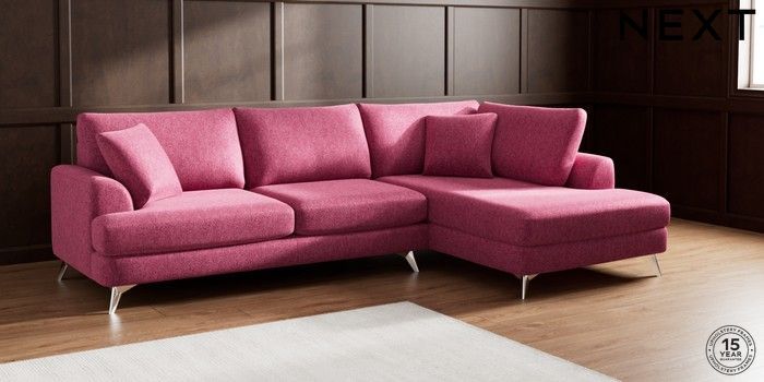7.2.5 Buy Parker Large Corner Chaise - Right Hand Cotswold Chenille Dark Raspberry Pink High Metal - Chrome from the Next UK online shop Click here to use our accessible website